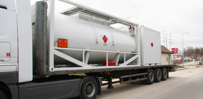 In Kombination mit einem speziellem Versorgungscontainer aus unserem Hause, können externe Verbraucher, wie Notstromaggregate o. ä. direkt versorgt werden. Eine im Container verbaute Zapfsäule ,lässt sogar eine herkömmliche Betankung von Fahrzeugen und Arbeitsgerät zu. Der Spezialtankcontainer ist doppelwandig und hat eine Zulassung zur Lagerung des Kraftstoffs als Tankanlage, sowohl eine zum Transport nach ADR und GGVSE